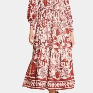 Striking Hunter Bell Central Park Rosie Maxi Dress NWT! Cinched tie waist. Puff sleeves. Side slit. Generous size 10. Pit to pit 21”. Smallest at 17”. Shoulder to hem 52”