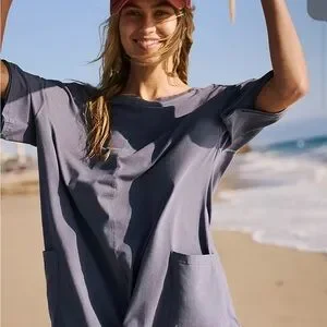 Free People Hot Shot Tee Romper light grey color