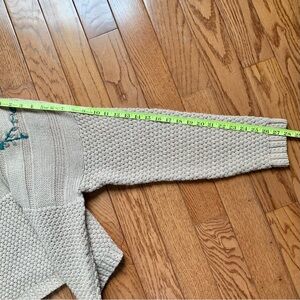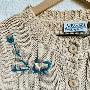 VTG Autograph American Ramie Cotton Tan Beige Knit Embroidered Cardigan Sweater