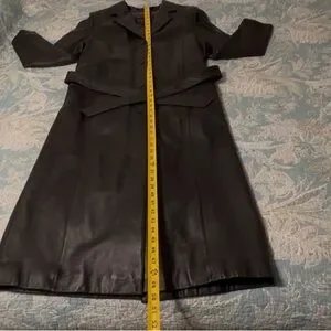 Wilson’s Leather Pelle Studio 100% black leather duster coat, size large. Full frontal button up design with slight tailored fit. Leather waist strap included, left/right hip hand pockets. Perhaps the coolest feature is the purple satin 3m Thinsulate zip out liner. I’m biased of course, but this is a proper leather coat with many, many miles left. No stains, tears, rips, holes, pics don’t do it justice.