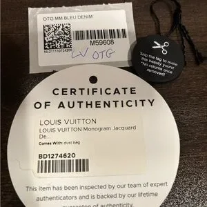 FashionPhile. Sticker, FashionPhile tag and dust bag. Some structure wear but no other flaws. The way I purchased it, is the way I’m selling it. Double straps for hand carry and shoulder carry. Navy blue leather trim. Gold hardware. It’s supposed to looked faded like jeans. It’s not a flaw.