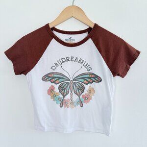 Hollister Baby Doll Graphic Cropped Shirt Fitted Butterfly Y2K Boho Retro Size XS