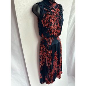 Nanette Lapore Smocked High Neck Pleated Midi Dress Size 6 Classy Cocktail Navy