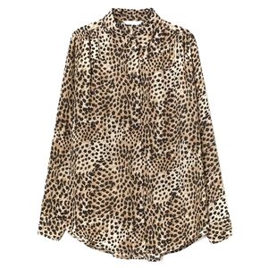 H&M leopard print button-up blouse in a lightweight, flowy fabric with a relaxed drape. Easy to style tucked or worn loose.