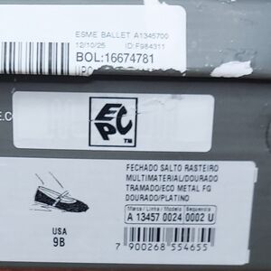 Arezzo Esme Ballet flats in metallic gold (Dourado/Platino), women’s size 9B (medium width). Brand new, ships quickly in the original box. Arezzo Esme Ballet Flats features woven metallic gold textile upper with smooth metallic trim, oversized sculptural gold-tone buckle, and adjustable Mary Jane instep strap for secure fit. Soft almond toe silhouette with flat low heel (approx. 0.25–0.5”). Lightweight flexible construction with slim black man-made/rubber outsole for traction and durability, cushioned insole, smooth interior lining, breathable woven texture. Multi-material upper (metallic woven textile + synthetic trim), man-made outsole. Balletcore style with statement hardware. Perfect for office, events, travel, resort wear, fall, spring, summer, streetwear, vacation, and everyday casual wear. Smoke-free and pet-free home. Any defects IF any are shown in photos.
