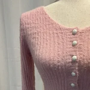 Chic pink knit cropped sweater. Adorable button embellishments. Super soft. Ideal for casual wear.
