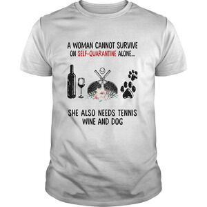 A Woman Cannot Survive On Self Quarantine Alone She Needs Tennis Wine Dog Shirt