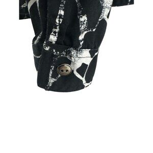 Chico's Size 1 = Medium/8 Black & White Floral Print Full Zip Jacket Top Cotton