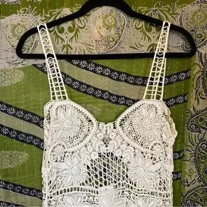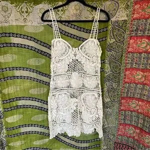 NWT For Love & Lemons Ivory Maldives Crochet Mini Dress/ Cover-Up Size Medium