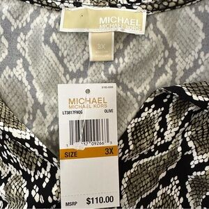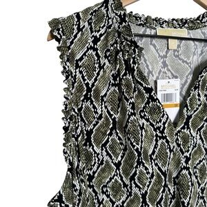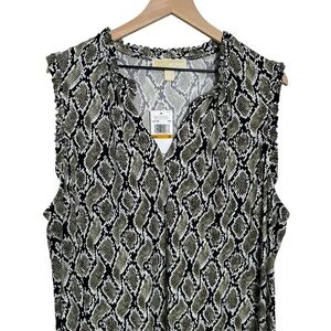 Michael Kors 3X Plus Olive Green Snake Print Midi Stretch Dress Sleeveless Vneck
