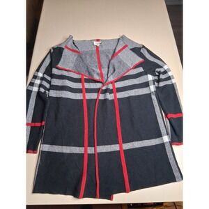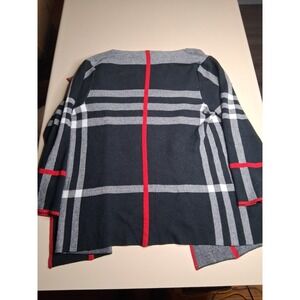 Joseph Ribkoff Women's Open Front Knit Jacket Plaid Navy Gray Red Size L