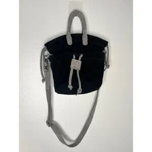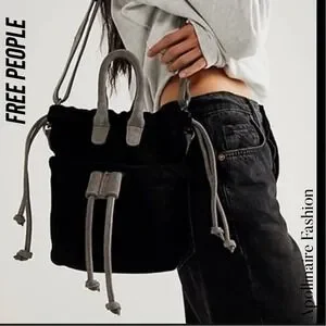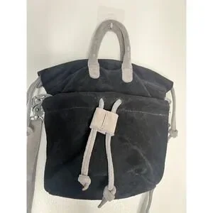 Free People Suede Drawstring Bucket Bag Black Gray Crossbody Tote Handbag