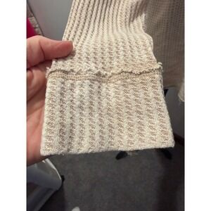 Zenana Waffle Knit Long Sleeve Top Beige Tan Raw Edge Seam Thermal L/XL