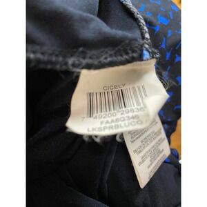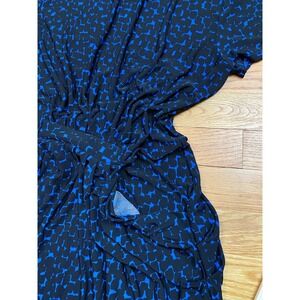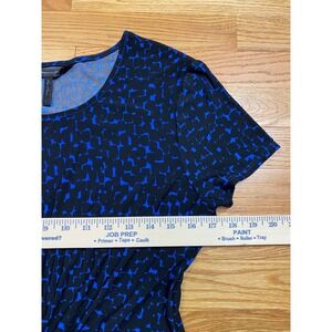BCBGMAXAZRIA Cicely Dress Women L Blue Black Abstract Ruched Jersey Knit Chic
