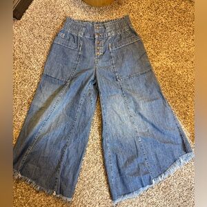 Great condition! Size small. Button fly. Advertised as a pull on pant but the button fly is functional. Very wide leg. Crop. Medium wash.