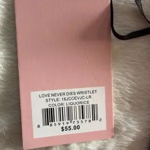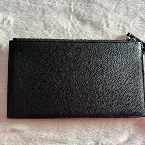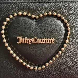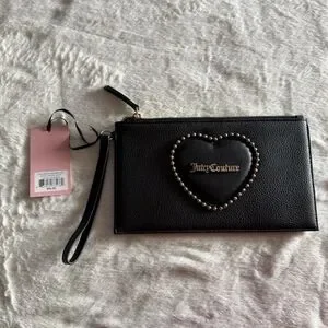 Elegant black wristlet with heart detail. Gold accents add a touch of luxury. Perfect for any occasion.