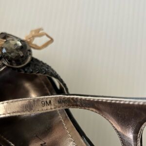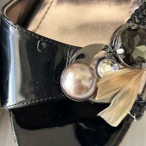 Beverly Feldman Black Patent Embellished Leopard Espadrille Wedges Sz 9 *READ