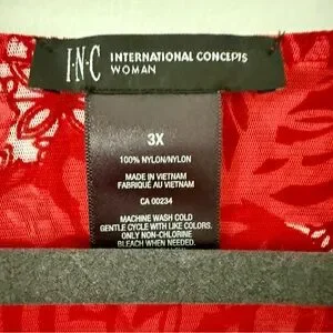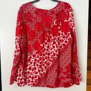 INC International Concepts Vibrant Red and White Patterned Blouse