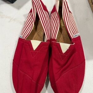 Toms Red and White Canvas Slip-Ons Mens Size 10