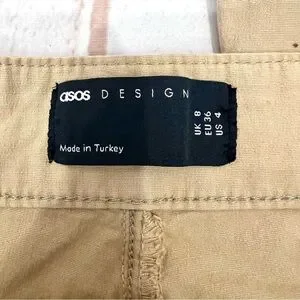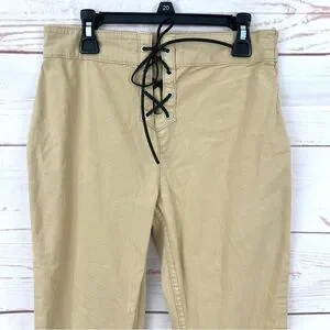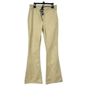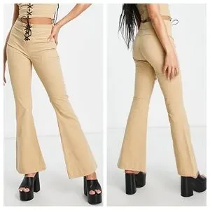 Asos Design Lace Up Detail Flare Pants in Beige Stone. Side zip closure and lace up closure. Tan khaki color. In good condition. Tag says size 4 and will also fit a 2 because they have a lot of stretch.
