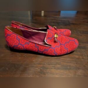 Tory Burch Cayley Chandra Red Patterned Loafers w/ Bow, Women's 8