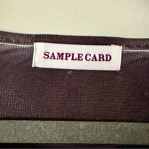 In the fashion industry, a "Sample Card" (or sample tag) typically identifies a prototype or pre-production garment created to test a design, fit, or construction before full manufacturing begins.