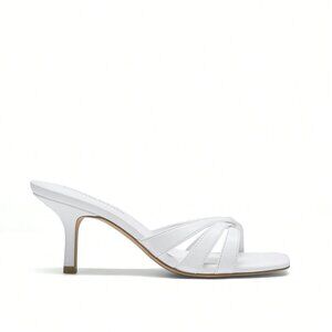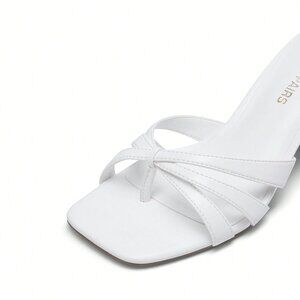 Elevate your style with these elegant white sandals, featuring a crisscross strap design, low kitten heels, and a slip-on fit. The toe post and mule style ensure comfort and a true to size fit. Perfect for dressing up or adding a sophisticated touch to your daily casual outfits with great ease always.