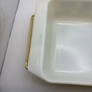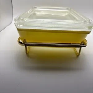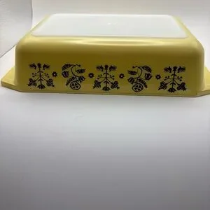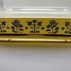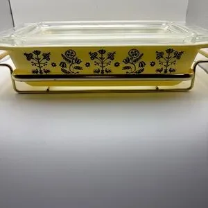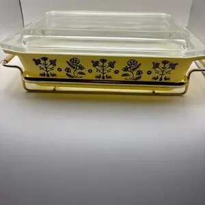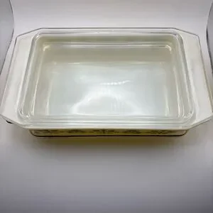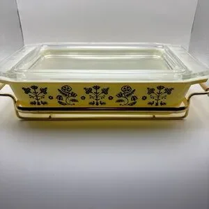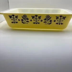 1957 PYREX 575 B - #21 2 QT Space Saver Dish Promo Needlepoint Embroidery. Excellent condition. Small mark on handle. Shown in picture.