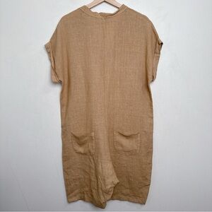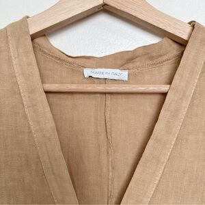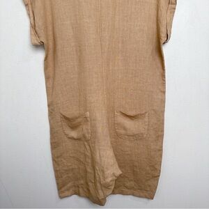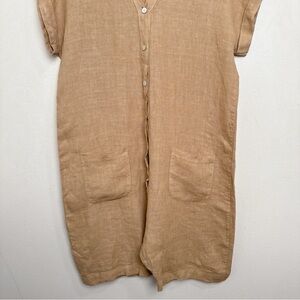 Made In Italy Womens Medium Linen Vneck Button Tan Romper