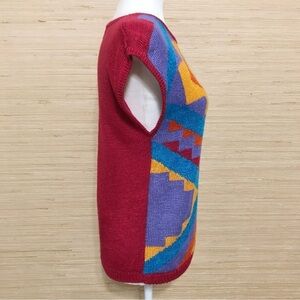 Renee Tener for Jeanne Pierre Multicolor Abstract Knit Linen Blend Scoop Neck Sweater Vest size medium -EUC
