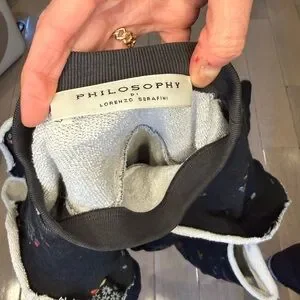 Philosophy di Lorenzo Serafini Black Floral Top with ruffles and shoulder cutouts. Worn once and in perfect condition. 100% Cotton. Size small. Slightly cropped. 18 inches long from shoulder.