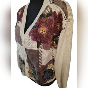 Vtg 80s/90s chunky knit Floral cottagecore cardigan sweater