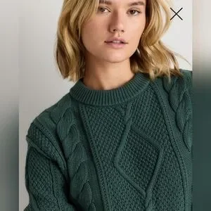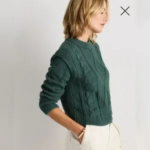 ✅ Quince 100% Organic Cotton Cropped Cable Knit Crew Sweater, Big Sur (XS)