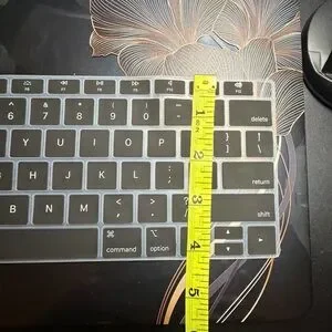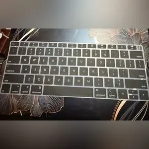 Transparent keyboard cover with black key labels. Perfect for protecting your keyboard.