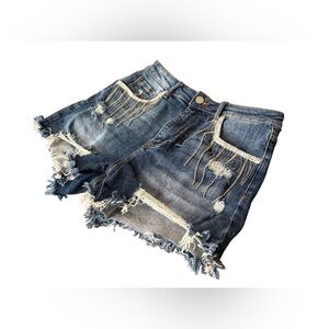 Rise Jeans women's blue denim shorts with rhinestone size M high rise 93% cotton