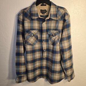 NEW Pendleton Canyon Western Shirt XL Mens Blue Plaid Umatilla Wool Pearl Snap