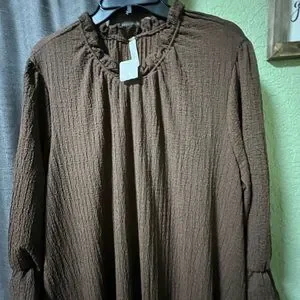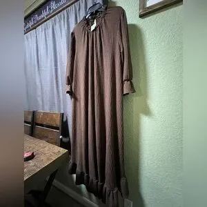 Chic long sleeve dress in rich chocolate. Flowy and stylish for any event.