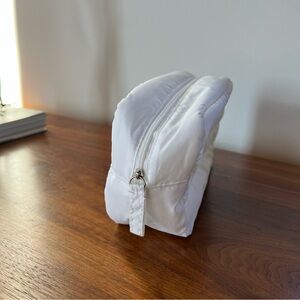 White Puffer Quilted Cosmetic Bag. Perfect for travel or daily use. From the skincare brand CLE. Great size fits a ton! Measures 9” long x 4.5” tall x 3” deep. Good condition. No flaws. Ask any questions!