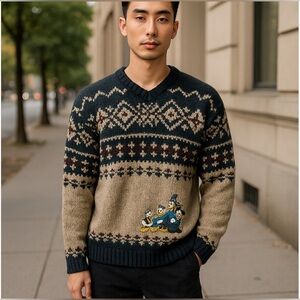 Embroidery Mickey, Goofy & Donald Duck Ski Theme Wool Sweater