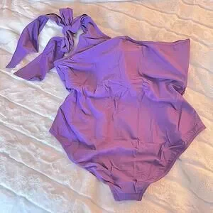 🆕 J. Crew Bow One Shoulder Bow One Piece Swimsuit in Purple Lilac (color is called VIOLA) in women’s Size 22