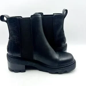 Sorel Womens Joan Now Chelsea Boot US 8.5 EU 39.5 Black Leather Waterproof NIB