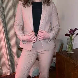 An Elle Woods worthy pink suit. The bottoms are a curvy fit, perfect for preventing a gap at the back of the pants.