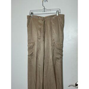 Johnny Was Womens Taupe Satin Straight-Leg Cargo Pants Size Small