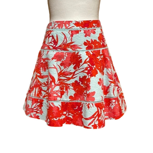 Super cute blue and coral red floral print skirt. Fully lined. Hidden side zipper.