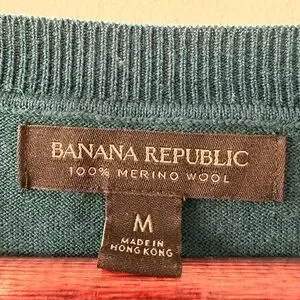 Elegant merino wool sweater by Banana Republic. Rich teal color. Ideal for versatile styling. Slight pilling at bottom of sweater and sleeve.