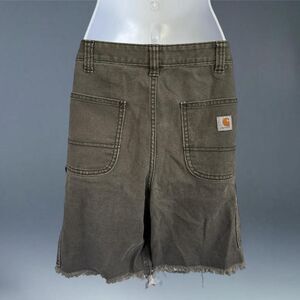 Carhartt Slim Fit Cargo Raw Hem Shorts Green Canvas Workwear Mens 12 Regular
