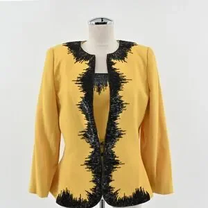 Vtg Nolan Miller Wool Beaded Jacket Tank Set Size 8 Yellow Retro Glam Hong Kong
