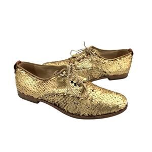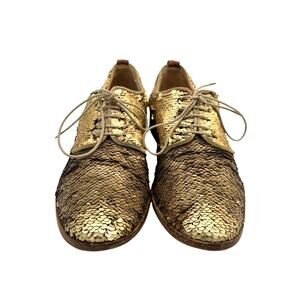 AGL Matte Gold All Over Sequins Lace Up Oxford Classic Party Dress Shoes