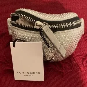 Stylish Kurt Geiger bag. Silver studs with zipper closure. Compact and chic design.