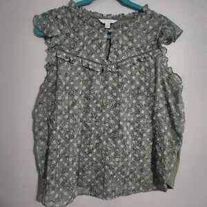 LC Lauren Conrad Green Floral Ruffle Sleeveless Blouse, size XL